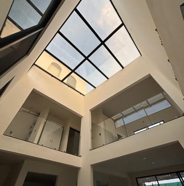Domos techados y pergolados con vidrios templados, protección solar y filtros.