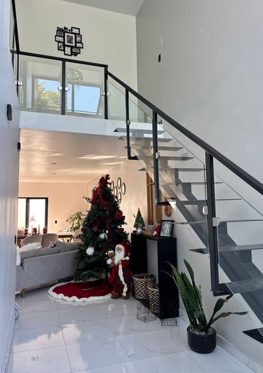 Barandales de vidrio templado, con herrajes de calidad, combinados con herrería y/o acero inoxidable.